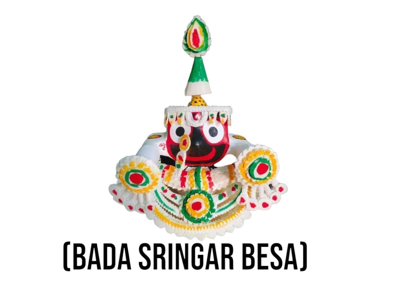 During thisΒ besha, theΒ Chha Murti AlankarΒ (six-piece ornaments) are used. Goddess Shridevi resides on the lap of Lord Jagannath. Then the deities are offered theΒ Bada Singhar BhogaΒ (night offering).