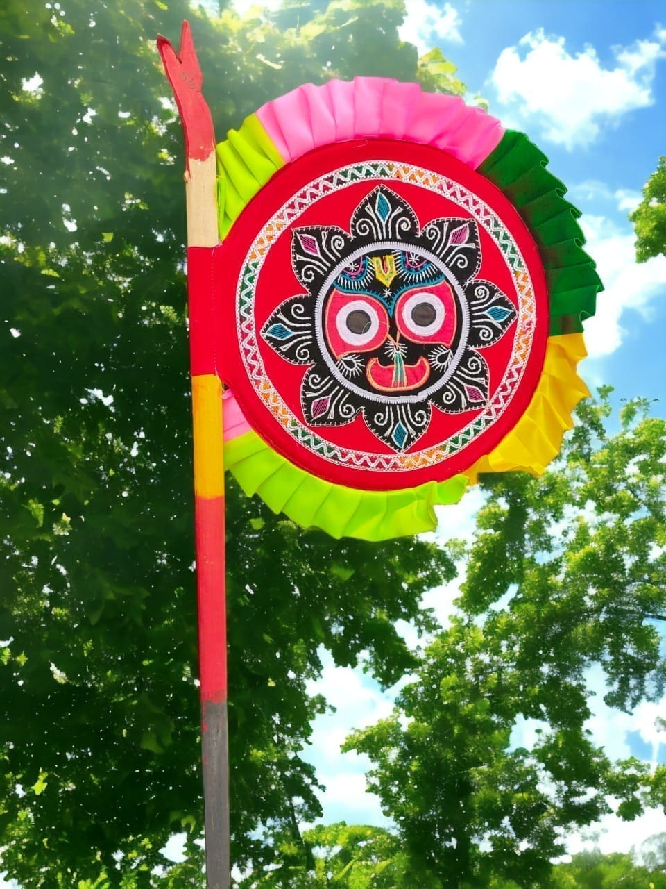 Connect with the Divine through Alat: The divine hand fan, a sacred tool for Shri Jagannath Mahaprabhu rituals. Crafted with wood and velvet, symbolizing respect, devotion, and service to the deity.