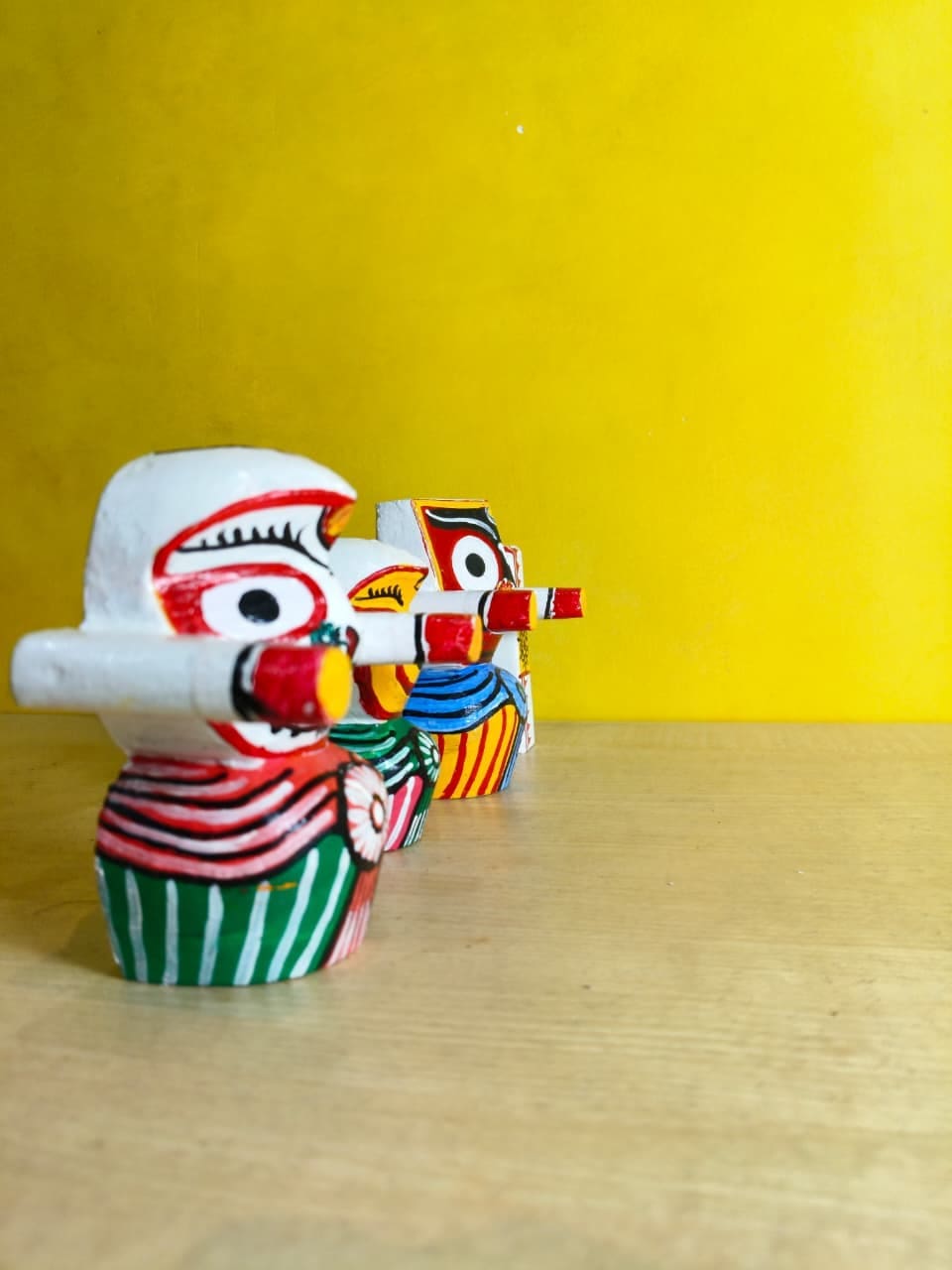 Embrace divine bliss with the Anandamaya Rupam Neem Wood Jagannath Idol & Siblings set. πΌπ« Crafted from pure neem wood, embodying Odia tradition, this set brings tranquility and grace to your spiritual sanctuary. π