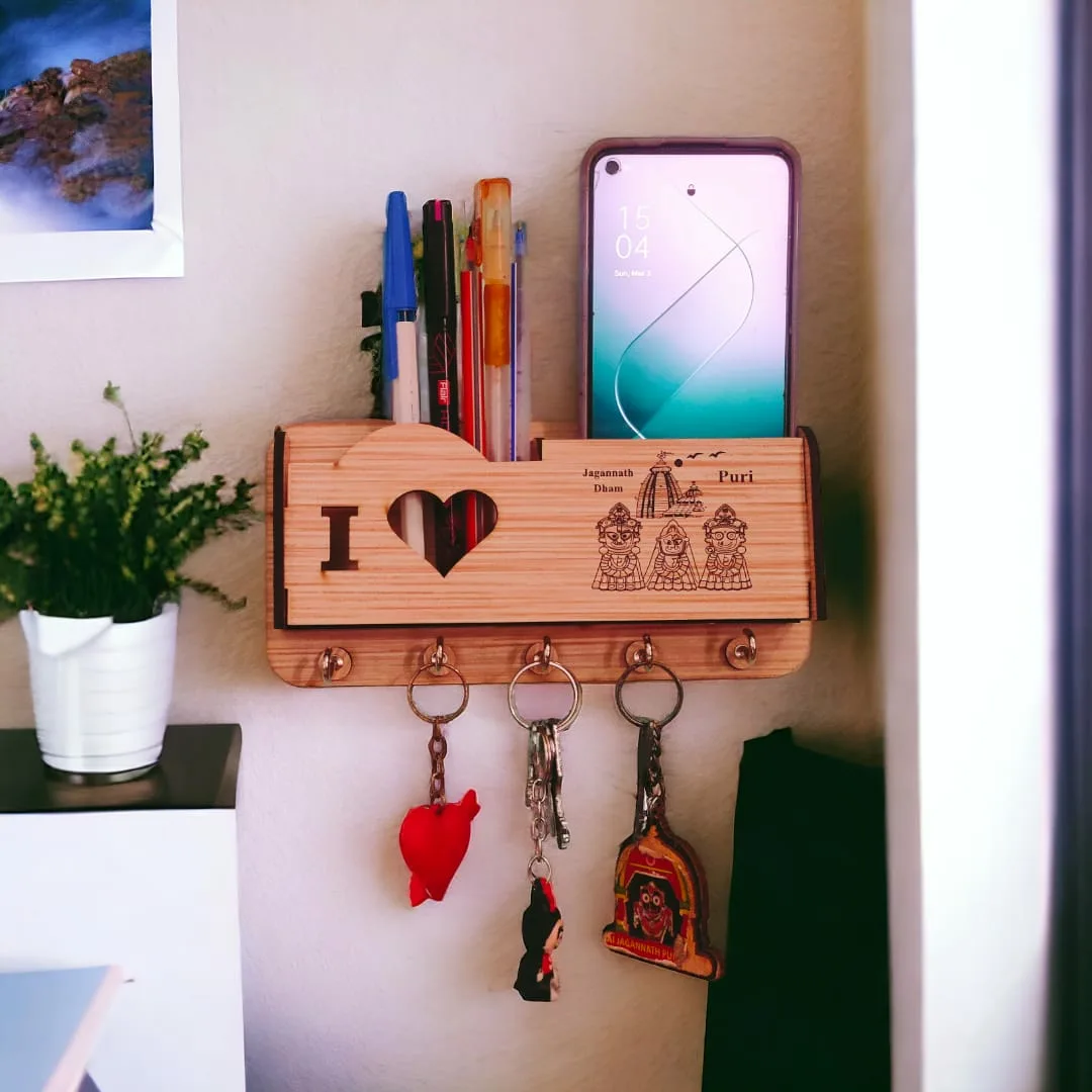 Presenting the divine Key Stand, a functional and decorative item handcrafted to honor Shri Jagannath. ποΈπΊ Organize keys, mobile phones, and pens with elegance and tradition in mind. Enhance your sacred space with this artisanal key holder adorned with blossoming flowers for natural charm.