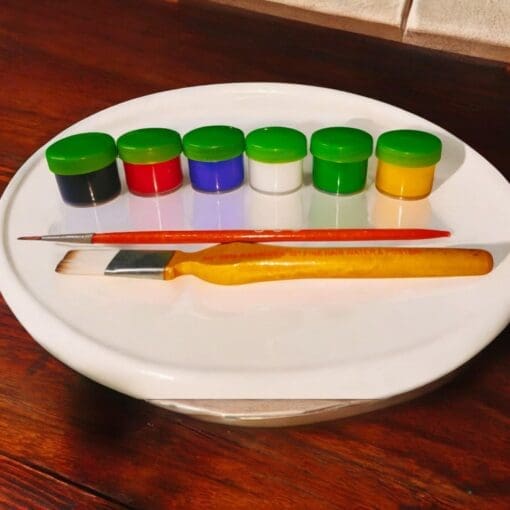 This Banak Lagi kit includes 6 natural colors: Red, white, green, blue, yellow, and black, representing various aspects of the Lord’s divine personality. It also contains 2 handcrafted brushes designed for precise application and smooth strokes.