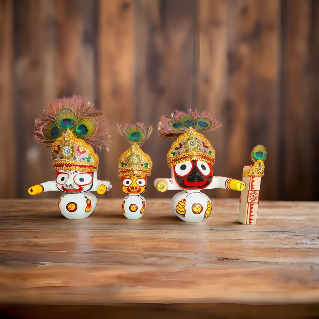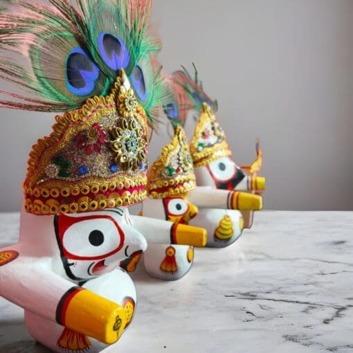 - Set Includes: 3 Mukuts (Jagannath, Balabhadra & Subhadra) + 1 for Sudarshan