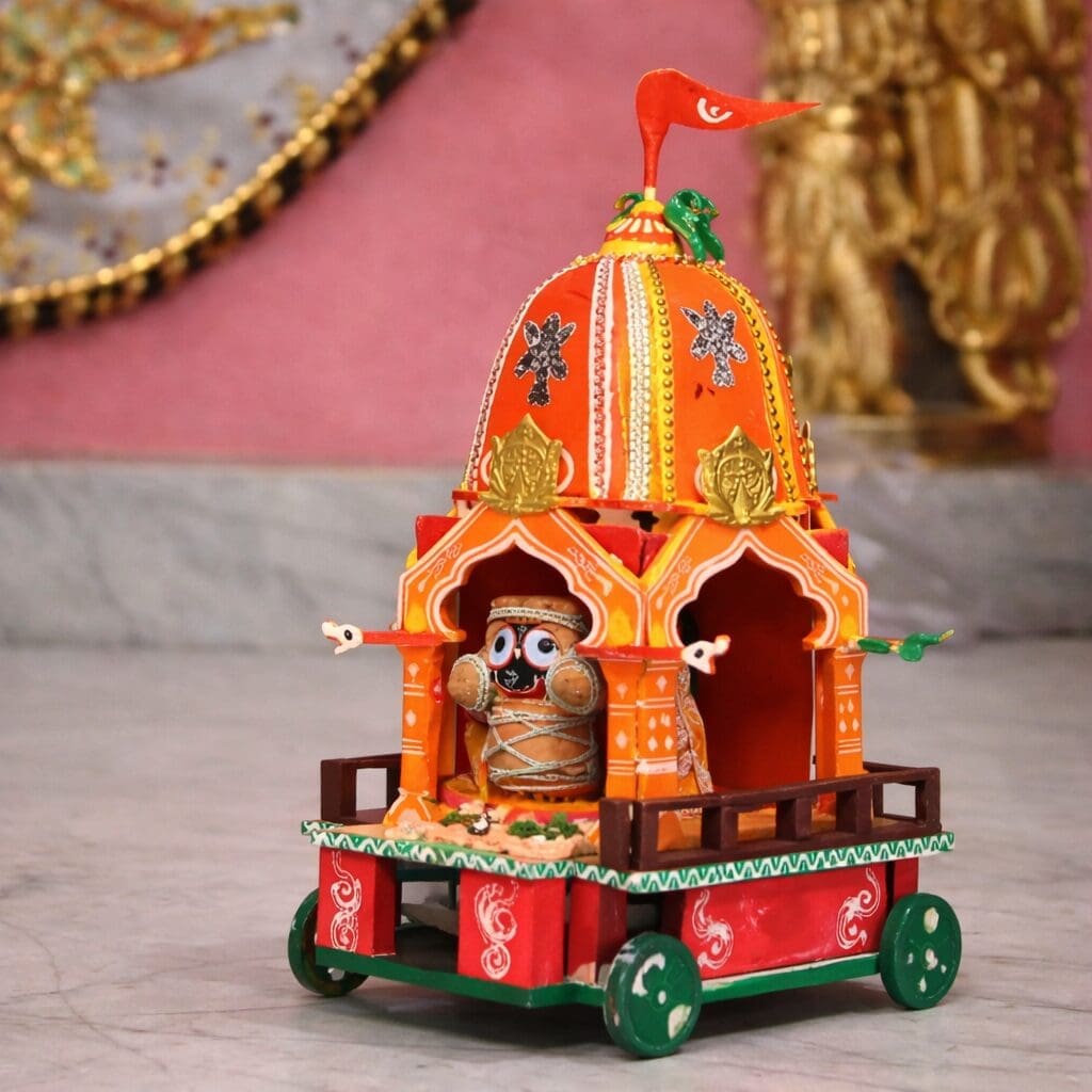 Enhance your puja space, educate children about Rath Yatra, and inspire devotion with this symbolic piece. Support traditional craftsmanship while immersing in the cultural heritage of Jagannath culture. Order your Jagannath Ratha Replica today! 🌟
