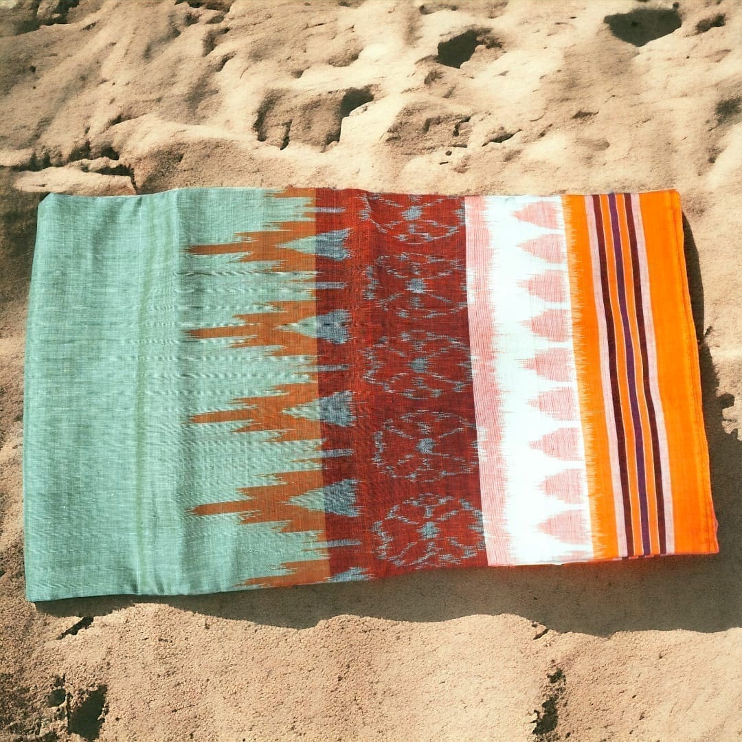 Embrace spiritual comfort with the JustKalinga.com Traditional Jodo (Dhoti + Uttariya), a symbol of purity and divine connection. Handcrafted in India, this Certified Organic Cotton attire features vibrant multi-color designs, perfect for rituals and ceremonies. The organic cotton allows free energy flow for harmony of body, mind, and soul.