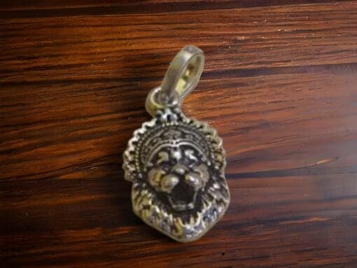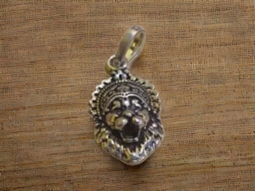 Handcrafted in a dual-tone antique silver finish, this pendant showcases a detailed lion-face design symbolizing divine grace and strength.