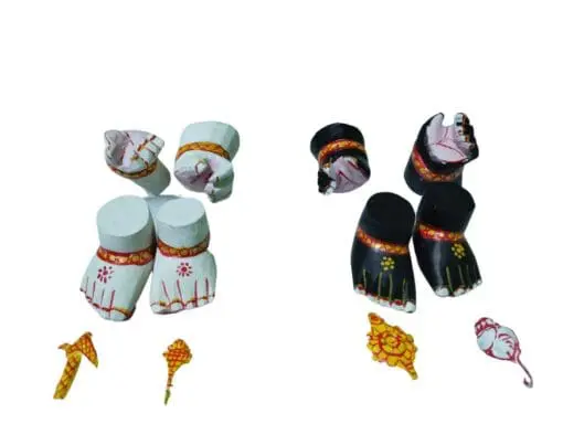 Crafted from lightweight wood, this complete set includes 4 hands with weapons and 4 padukas suitable for all deity sizes. Support local artisans in Puri and receive complimentary Nirmalya Mahaprasadam and Sanjua for 30 days with your purchase. π€πΏ