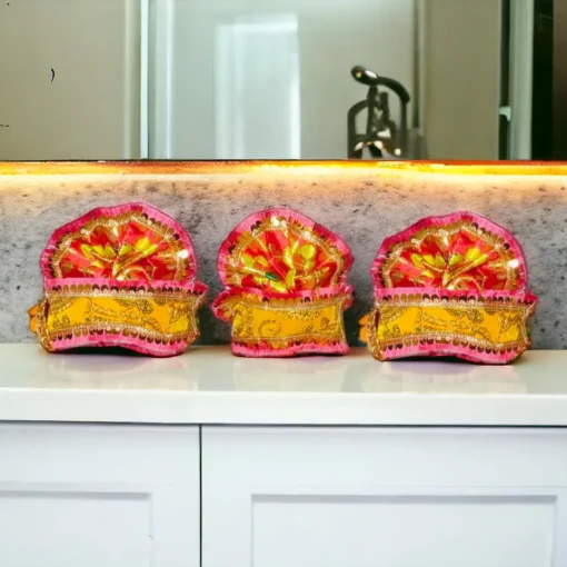 Premium Mukut Set for Lord Jagannath, Balabhadra, and Subhadraβregal headwear for divine adornment. ππ Crafted with intricate detail from luxurious velvet fabric, these crowns add elegance and devotion to your home altar or temple.