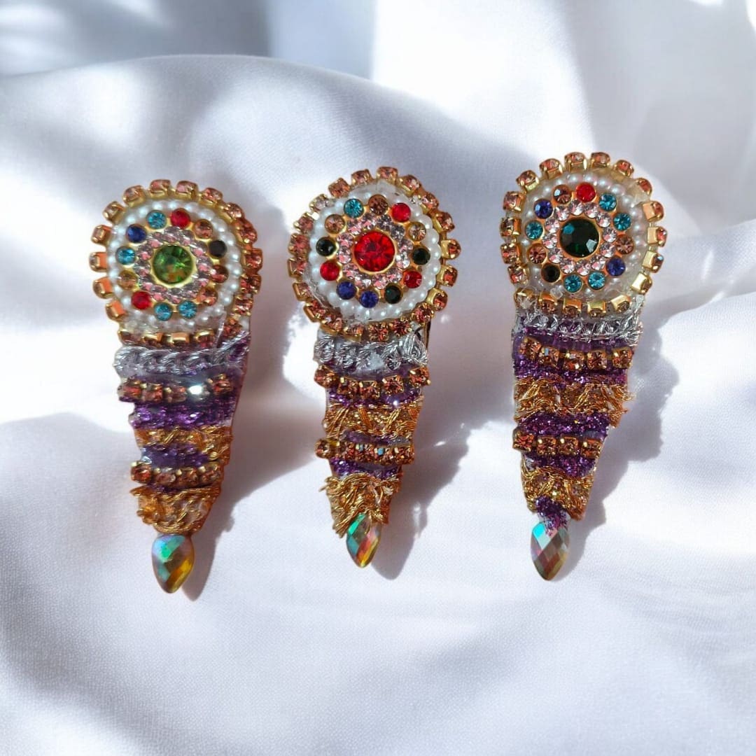 This set includes four nose pins, perfectly sized to adorn Shri Jagannath, Balabhadra, and Subhadra. Available in various sizes for a perfect fit, these nose pins add a touch of tradition and elegance to your deity adornment rituals. π¨π