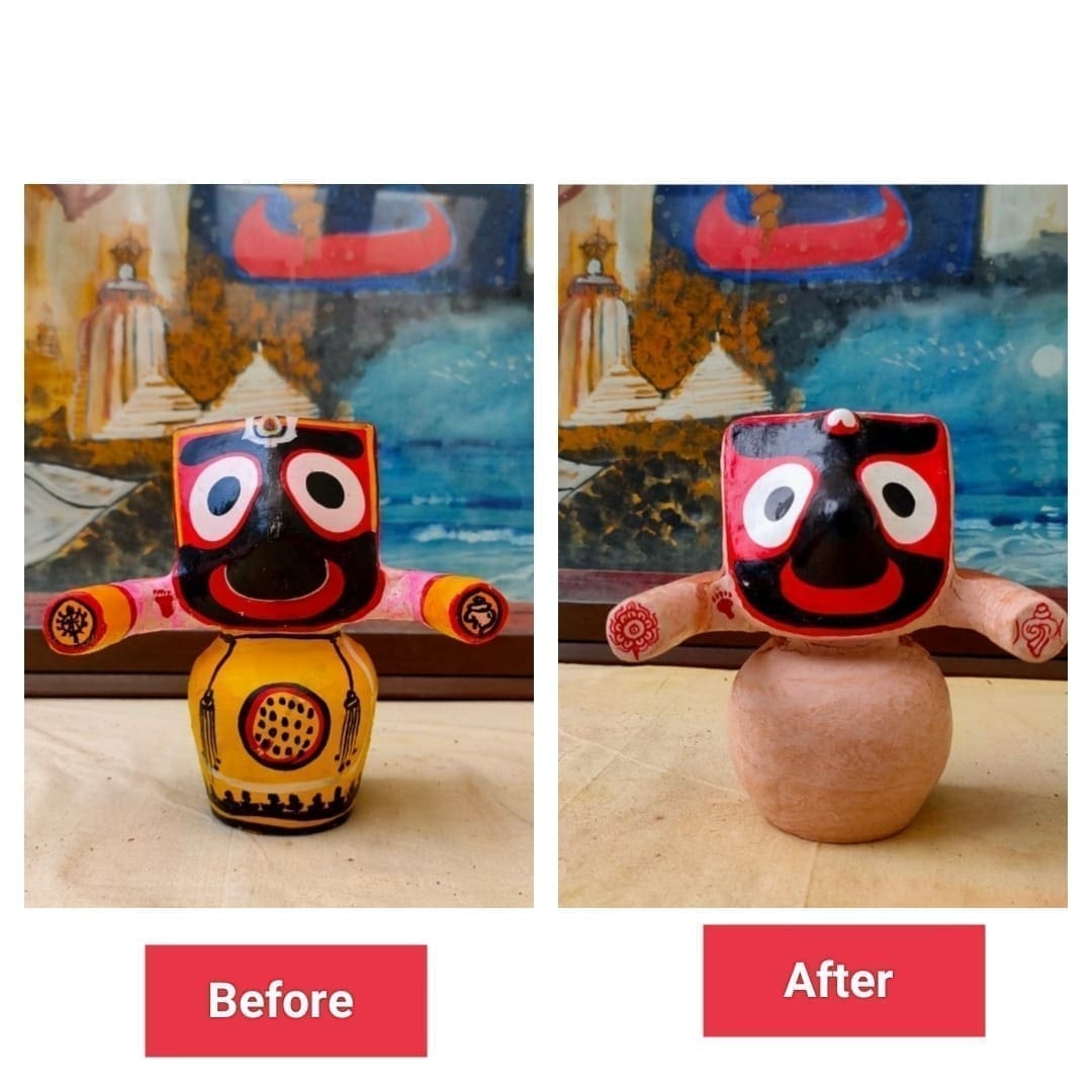 Our skilled artisans, trained in the sacred techniques of Shri Mandir of Puri, meticulously repaint your murti using authentic colors and natural pigments. ๐๐จ Experience a spiritually resonant connection with your deities through our time-honored Angaranga service.