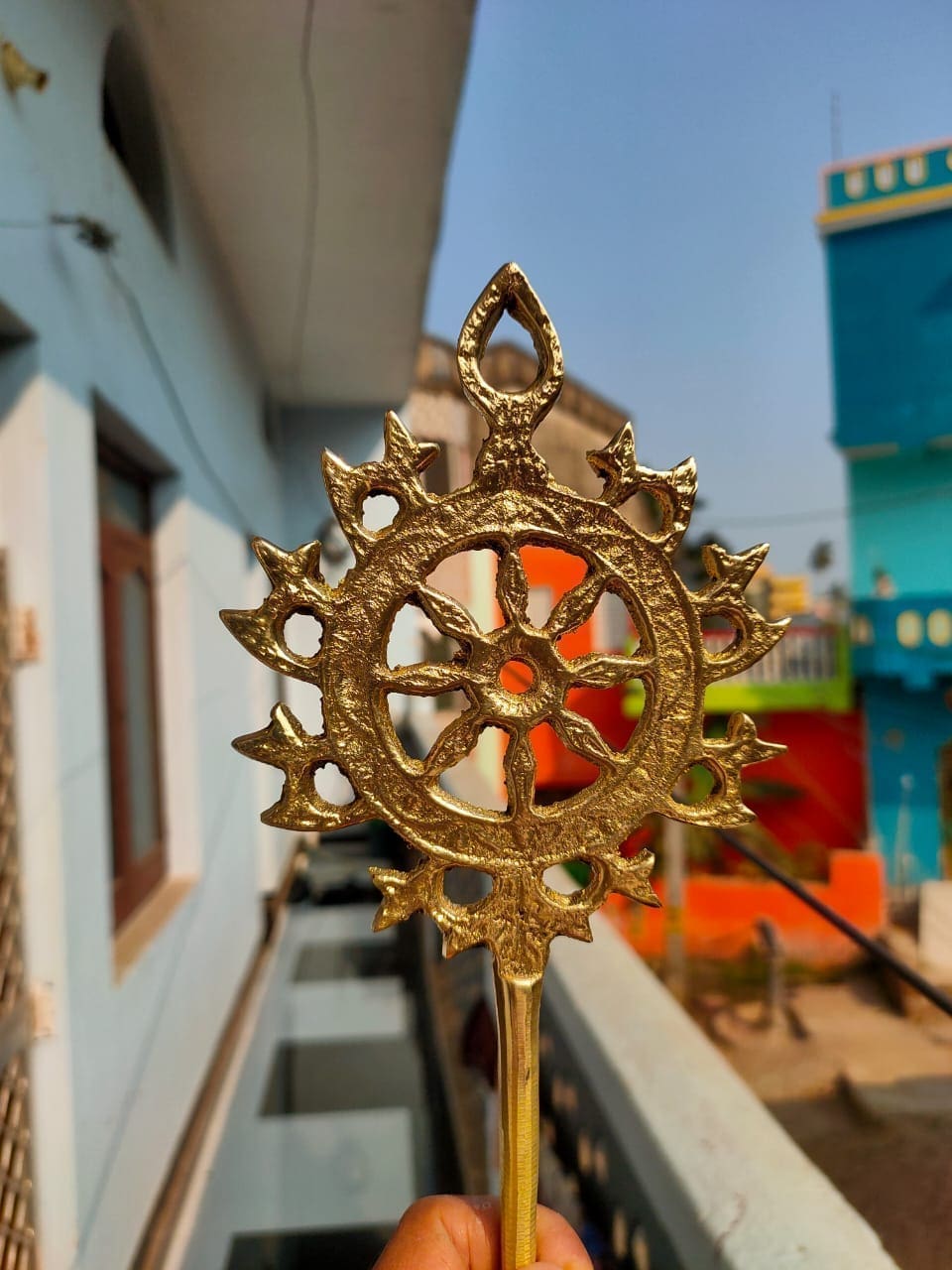 Embrace the divine energy of Lord Jagannath with the sacred Nilachakra, a beautifully crafted brass symbol. Revered as the ‘blue wheel,’ it represents His divine power, protection, and the cycle of creation. ππ