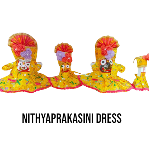 Introducing the divine Nithya Prakasini Dress & Flower Mukut Set β a luxurious 15-piece attire to grace Lord Jagannath, Balabhadra, and Subhadra murtis. πΌπ« Crafted from premium silk cloth in a vibrant yellow hue, symbolizing purity and devotion, creating a spiritually uplifting ambiance in your sacred space. π Offer not just an outfit but your heartfelt reverence to Jaguu β€οΈ