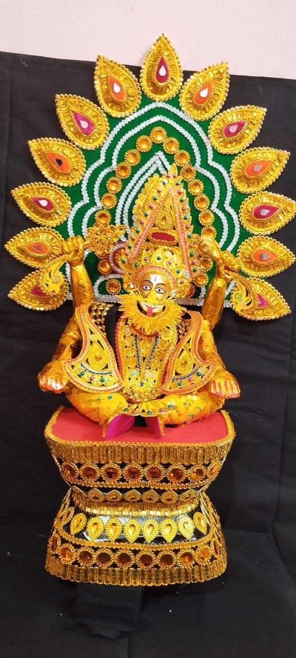 Handcrafted with devotion using lightweight materials like paper and thermocol, this ensemble replicates the grandeur of gold ornaments. Skilled artisans ensure each outfit reflects the divine grace of Lord Madan Mohan, making it a unique and beautiful addition to your home altar.