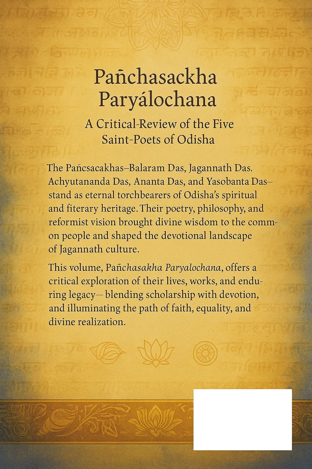 - Material: Digital E-book (PDF format, non-physical) with 112 pages of critical reviews on the Pañchasakhā philosophy and poetry, including Achyutananda’s Malika prophecies.