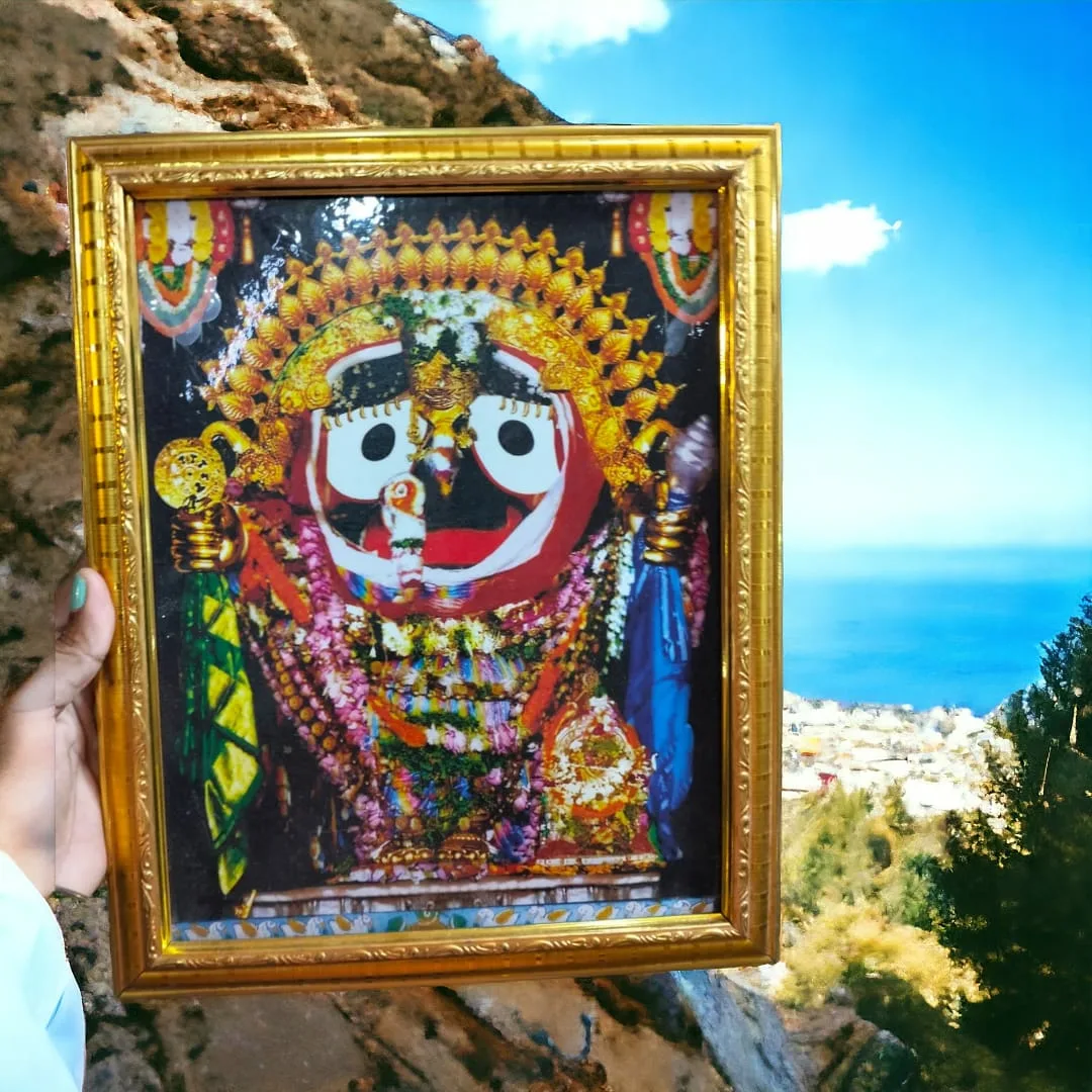 This beautifully crafted photo frame showcases the divine presence of Shri Jagannath Mahaprabhu in his Patitapaban form, the savior of the fallen. Perfect for enhancing your sacred space, adding a touch of devotion to your home decor, or gifting to loved ones.