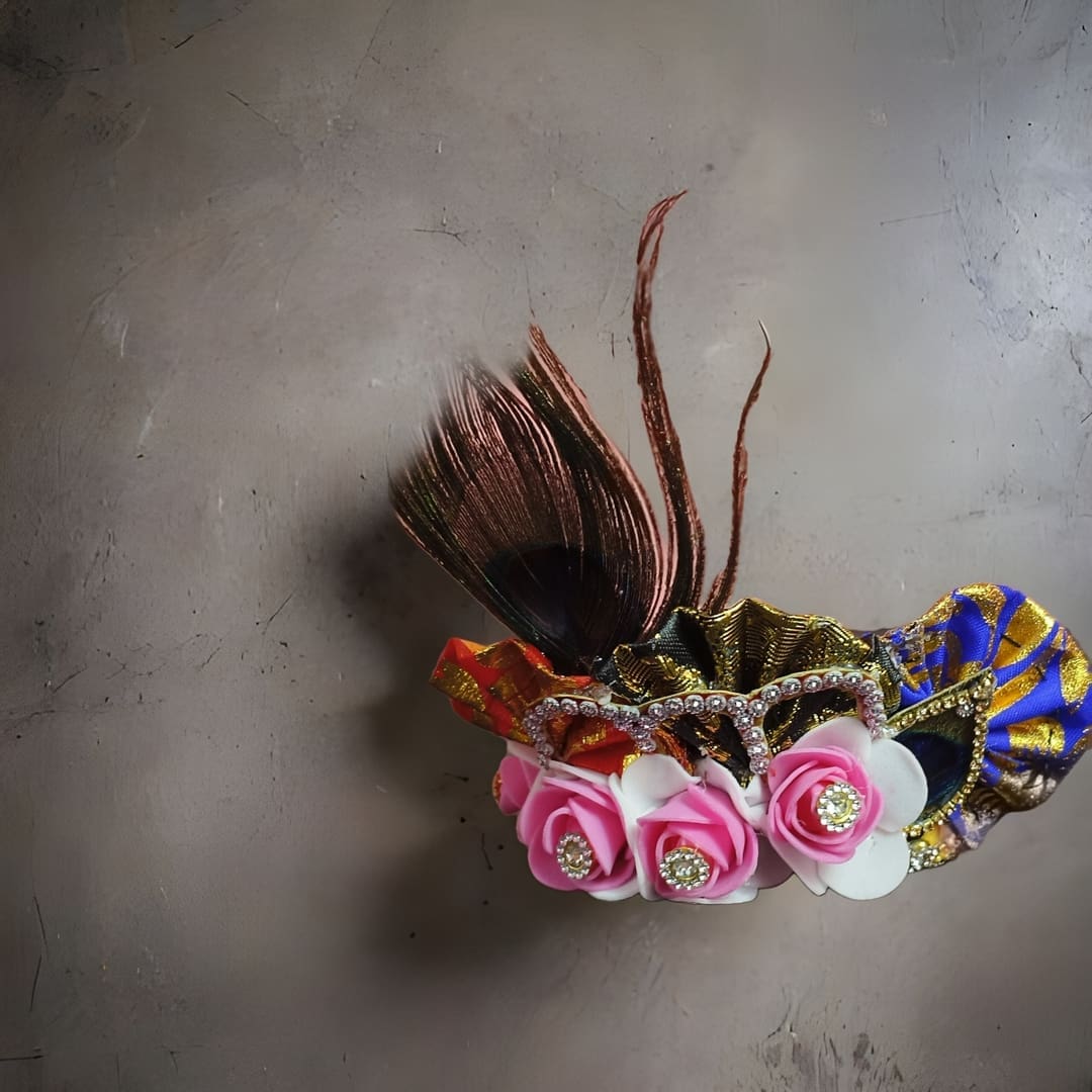Add a touch of grace to your deities with this exquisite Premium Handcrafted Flower Mukut, tailored for Lord Jagannath, Balabhadra, and Devi Subhadra. πΊβ¨ Designed with vibrant artificial roses, shining stones, intricate zari work, and a majestic peacock feather, this crown exudes devotion and eleganceβideal for Janmashtami, Snana Purnima, Rath Yatra, or daily worship. π