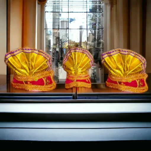 Material: Washable velvet cloth for a luxurious look. Complete Set: Includes 3 Mukut for Lord Jagannath, Balabhadra, and Subhadra. Perfect fit for your murtis. Ideal for home temples, expressing devotion. Your purchase includes Nirmalya Mahaprasadam and Sanjua for 30 days.