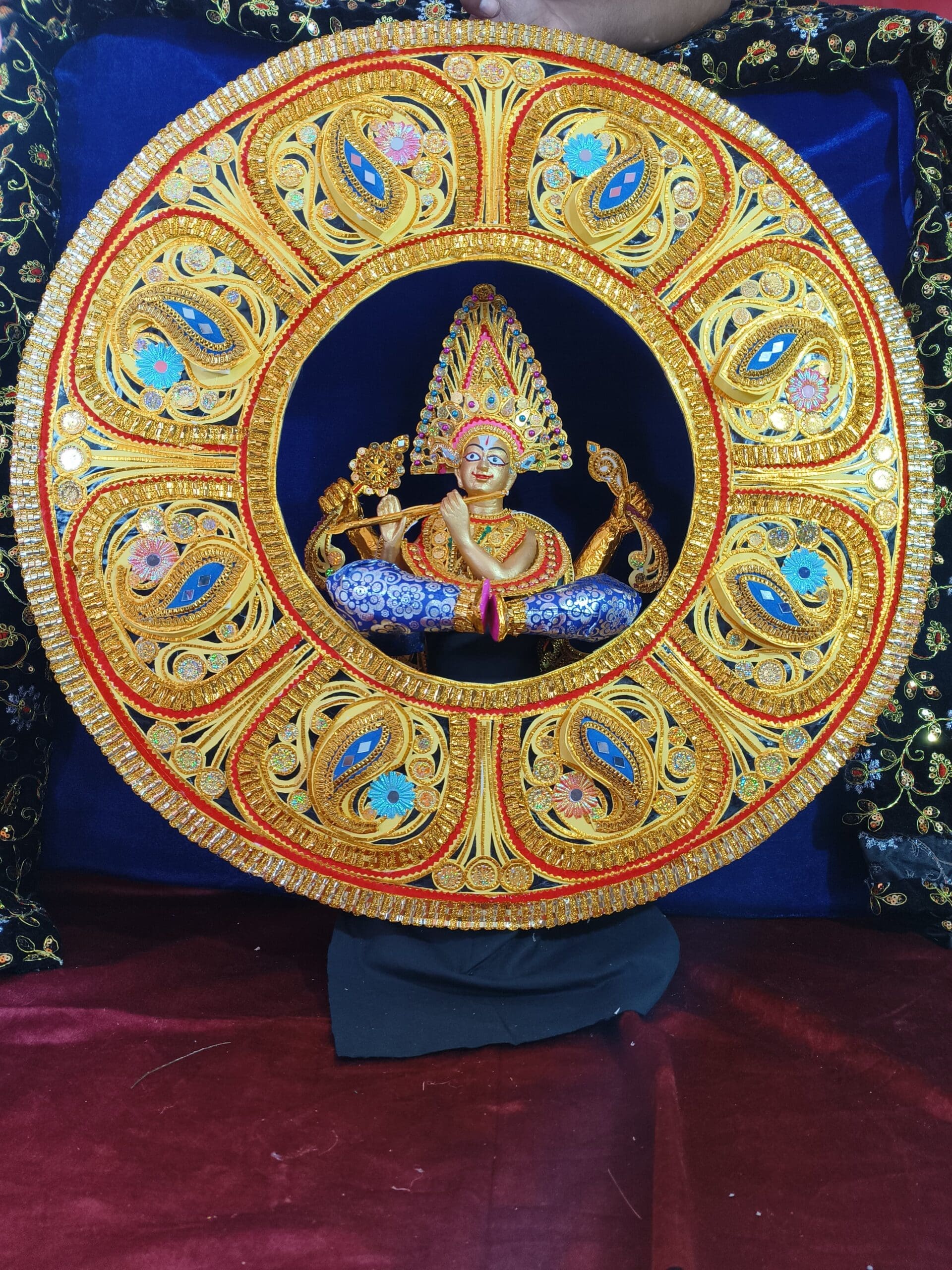 - Material: Crafted from lightweight and durable materials like paper and thermocol, meticulously designed to replicate the appearance of gold ornaments, symbolizing opulence and beauty.