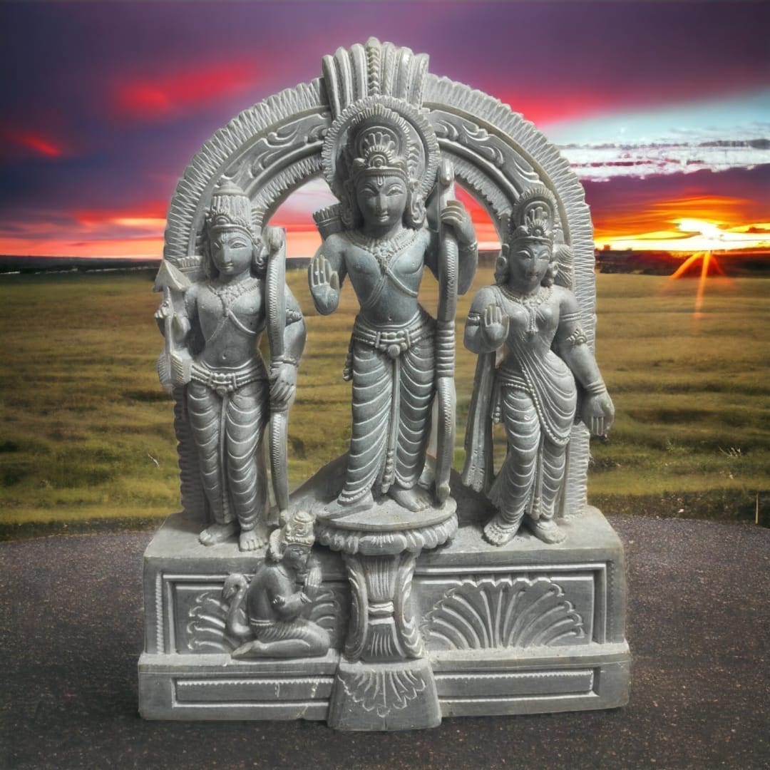 Your purchase includes Nirmalya Mahaprasadam and Sanjua, adding sacredness. Order your Sita Ram Laxman Stone Murti today for divine presence at home.