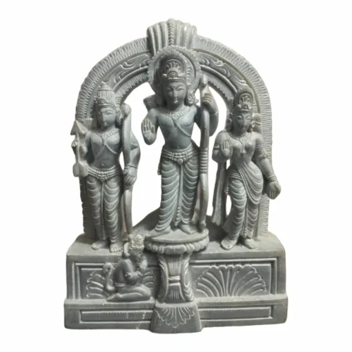 Welcome the Divine Presence of Sita, Ram, and Laxman with this exquisite stone murti, capturing the essence of love, duty, and devotion. Hand-carved from stone, it brings blessings into your sacred space.