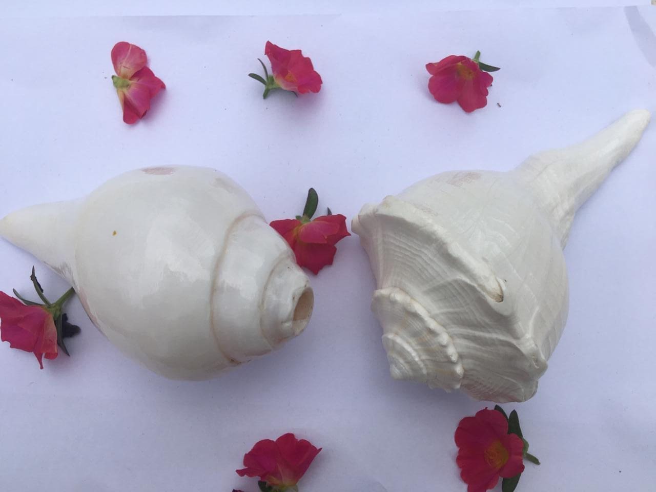 The Dakshinavarti Sankha, with its spiral opening on the right side, is considered particularly sacred. It is believed to bring good luck, prosperity, and spiritual growth. It is often used in puja rituals and for offering water to the deities.