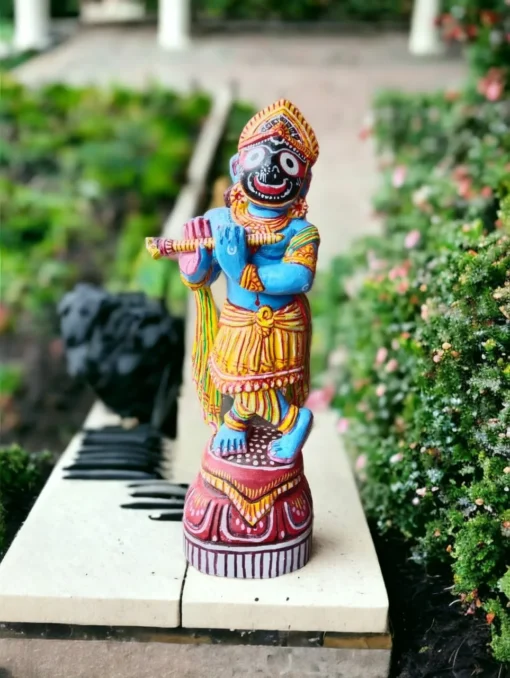 Krishna Rupam Jagannath Murti, a divine 13-inch idol for your sacred space. 🌟 Handcrafted from pure neem wood, capturing Lord Jagannath as Shri Krishna. 🙏 Ideal for home, office, or temple altars, radiating love and joy. ✨