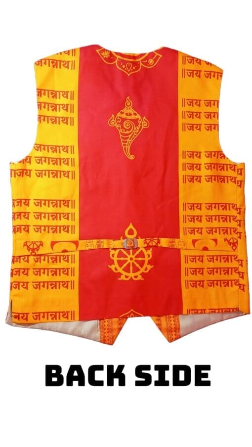 This bold and elegant vest is more than just clothingβit’s a deeply spiritual statement. Designed for both men and women, it offers comfort and breathability with its soft cotton fabric. Available in sizes ranging from S to XL, this unisex design symbolizes knowledge, happiness, and devotion with its vibrant yellow and red colors. πΊ