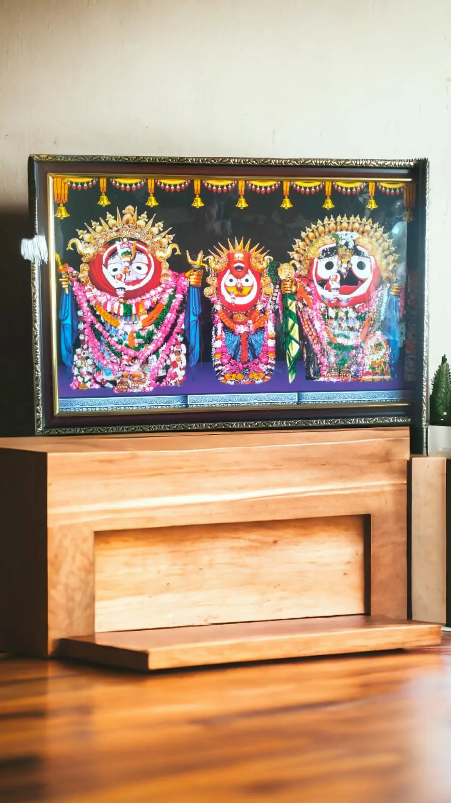 Bring the divine presence of Jagannath and siblings into your home with this stunning frame.