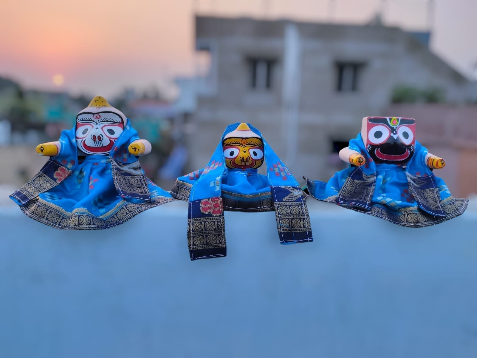 Adorn your deities in divine elegance with the Nila Madhav premium dress set with Chita. 🌟✨ Elevate your worship experience with this 14-piece attire for Lord Jagannath, Balabhadra, and Subhadra. 🙏 Embrace the serene blue color and luxurious silk pata cloth for a traditional temple ambiance at home. ❤️