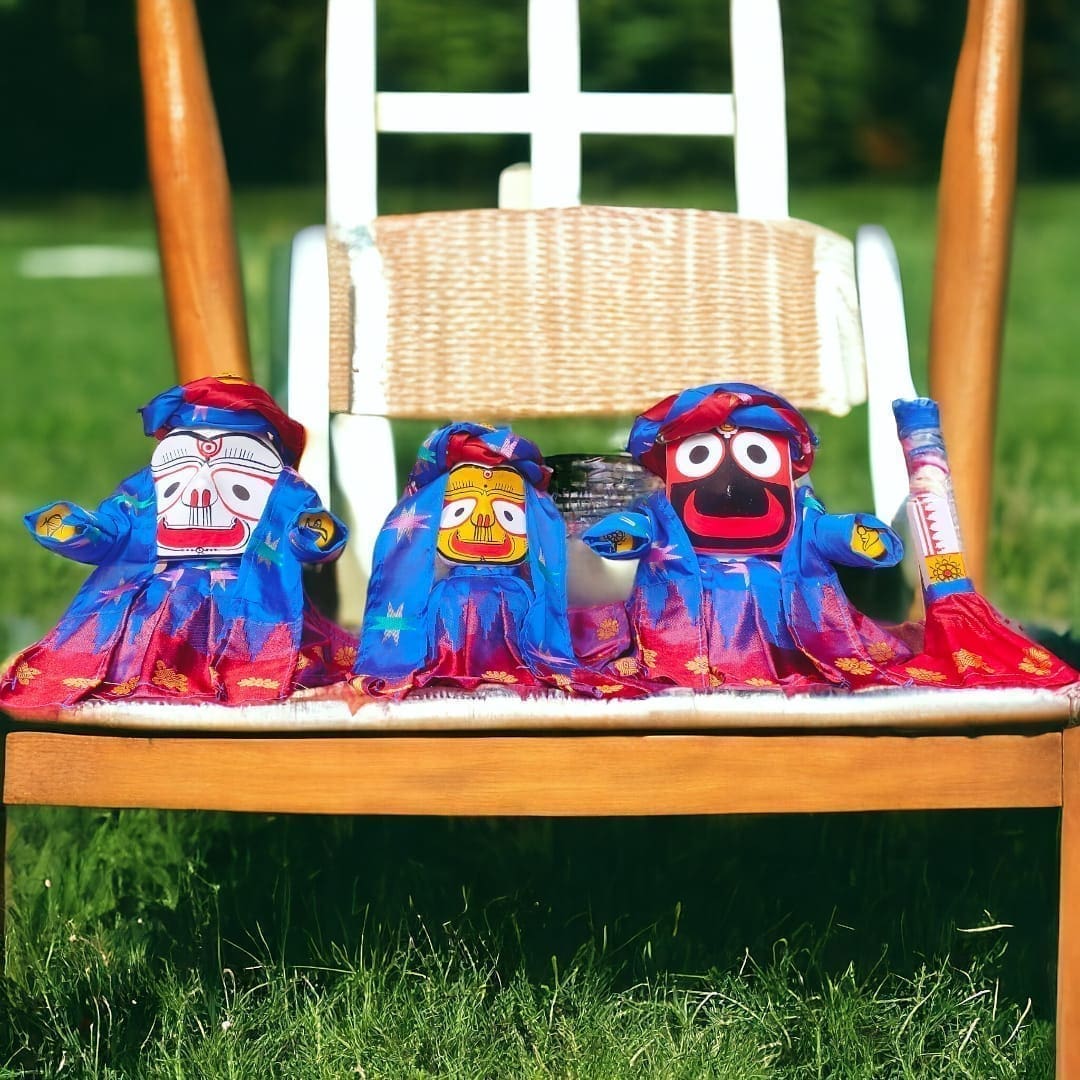 Enhance your puja space with the divine Nila Madhav premium dress set, perfect for adorning Lord Jagannath, Balabhadra, and Subhadra in traditional splendor. Crafted from high-quality silk pata cloth, this 14-piece set symbolizes divine grace and celestial connection. 🌟🙏