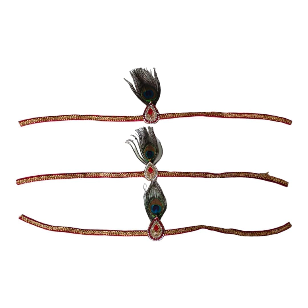 Brass Chita (Mani): A set of three royal forehead ornaments adorned with vibrant blue, green, and red stones set in a sparkling golden frame to illuminate the deities’ faces.