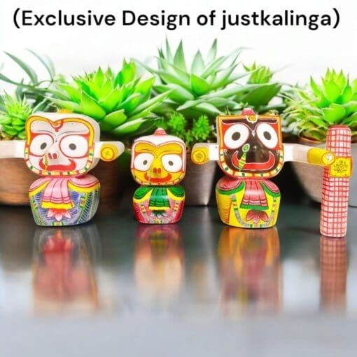 Raja Rupam Jagannath Murti Set: Immerse in the timeless tradition with the exquisite Raja Rupam Jagannath murti set. Handcrafted from pure neem wood, these idols embody Lord Jagannath, Balabhadra, and Subhadra in a classic Odia style.