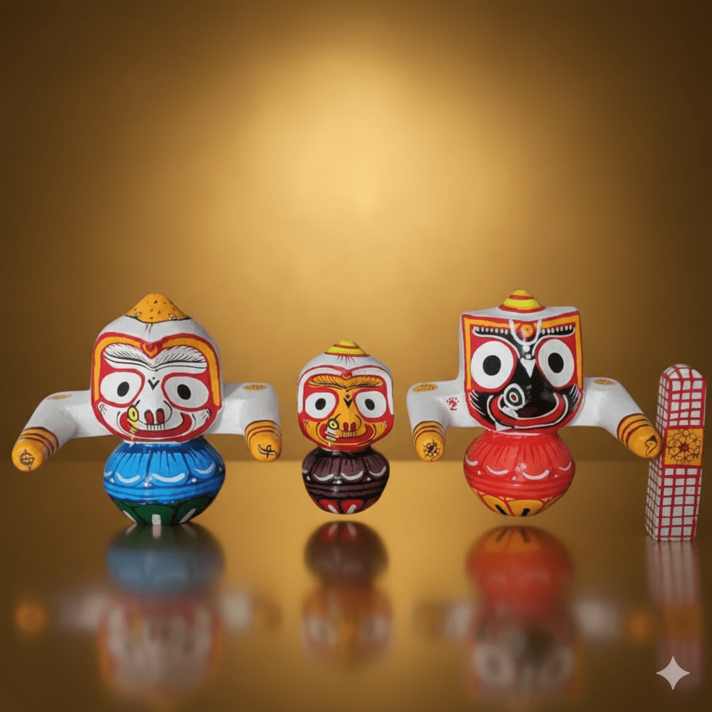 Experience the cosmic sound of creation and spiritual awakening with Nada Brahma Jagannath idols. Invite blessings, well-being, and serenity into your space. π Your purchase includes Lord Jagannath, Balabhadra, Subhadra, Sudarsan Chakra, Nirmalya Mahaprasadam, 30-day Sanjua, premium dress set, and Shri Jagannath pujan padhhati. π