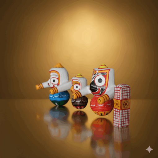 Immerse yourself in the divine vibrations of Nada Brahma with this exquisite Jagannath murti set. Crafted from pure neem wood, these idols embody Lord Jagannath, Balabhadra, and Subhadra in their Nada Brahma Rupam, symbolizing cosmic creation and spiritual harmony. πΏβ¨ Enhance your sacred space with Lord Jagannath’s divine presence. π