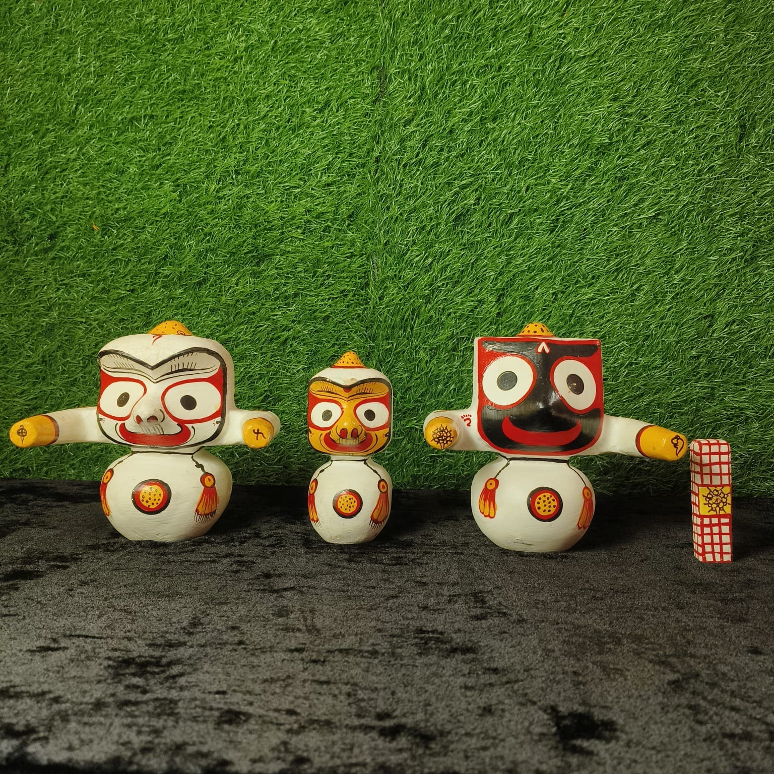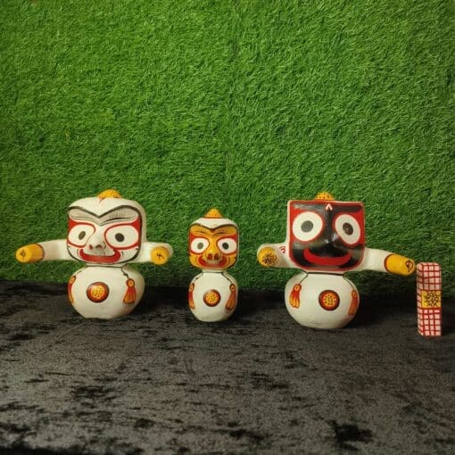 Embrace the divine radiance with the Sweta Varnam Murti Set, a stunning representation of Lord Jagannath, Balabhadra, and Subhadra, handcrafted from pure white neem wood. 🌟🙏 Capture the purity and beauty of the Puri temple in your sacred space today. 🌿