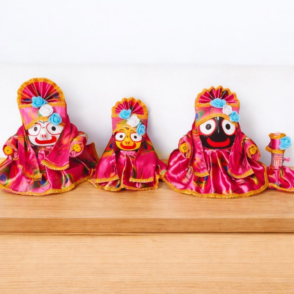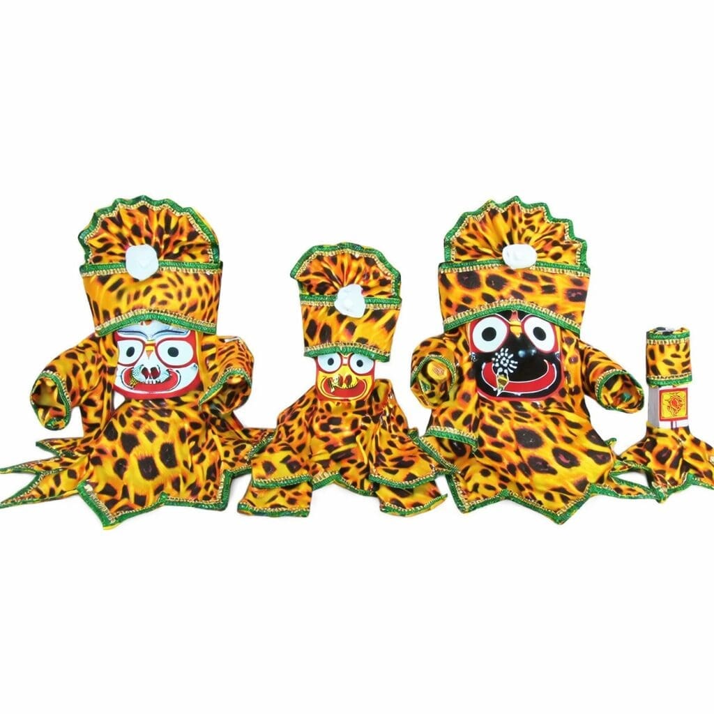 Presenting the Shri Jagannath Special Dress Set – a magnificent collection of five premium designer dresses, each crafted to reflect a different facet of Mahaprabhu’s glory. 🌼💫 From the bold patterns of the Shivani dress to the delicate floral elegance of the Divya Kusum, this set allows you to dress your Jaguu for every festival and seasonal mood. 🙏 Offer the finest colors and textures to your deities and witness their divine transformation ❤️