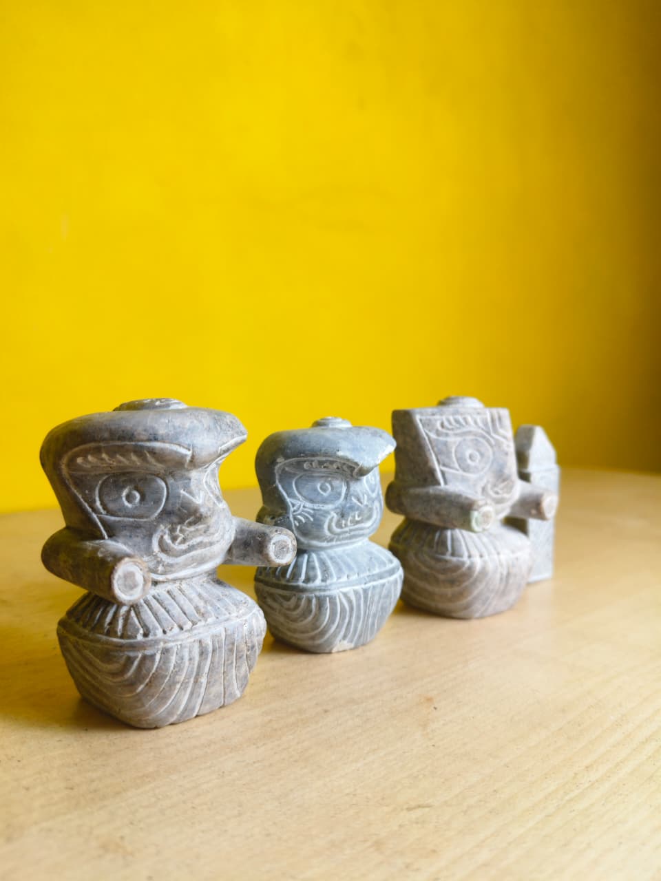 Keywords: Jagannath Murti, Balabhadra Murti, Subhadra Murti, Stone Murti, Hindu Deities, Home Temple, Spiritual Decor, Indian Art, Lord Jagannath, Unique Gift, Handcrafted Murti.