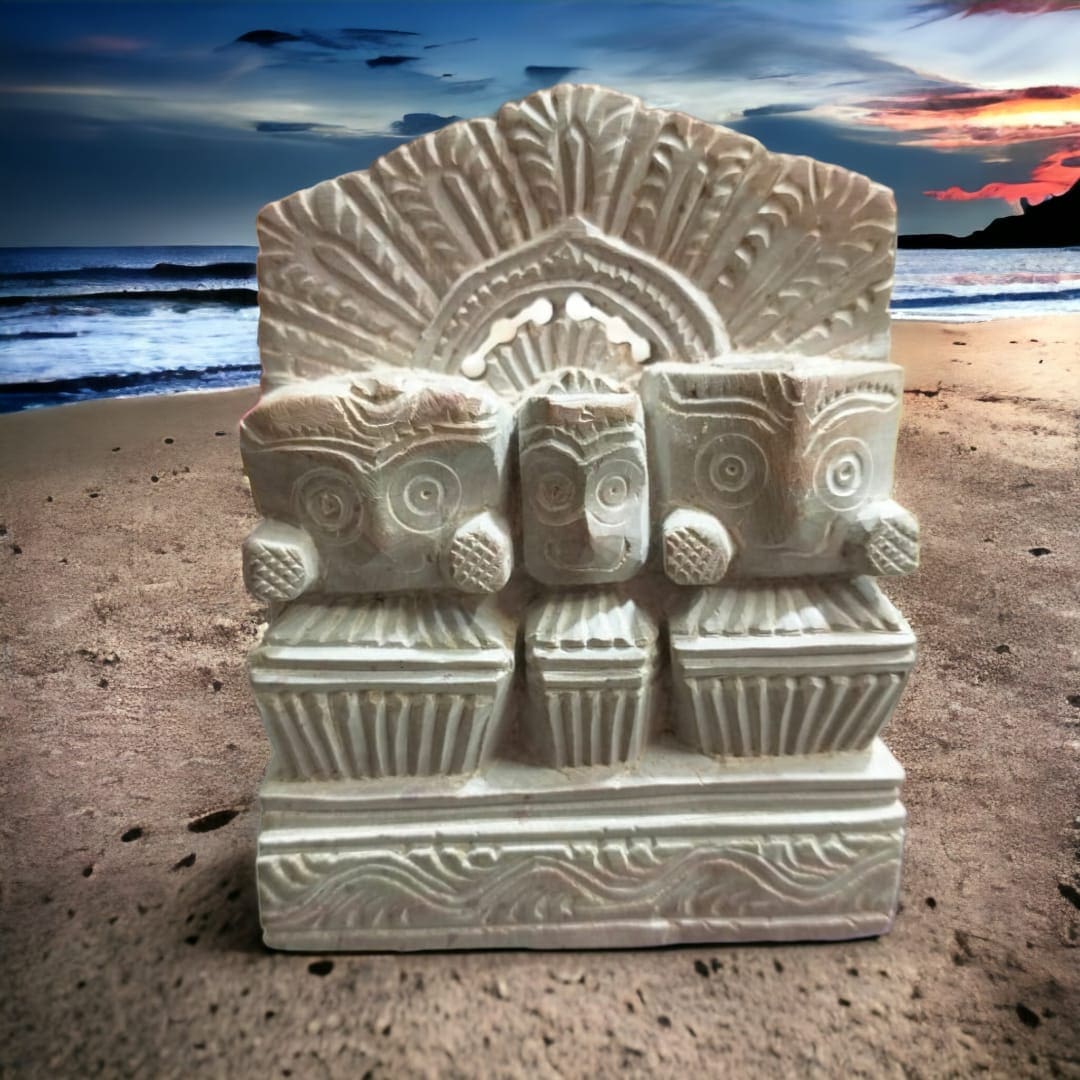 This exquisite marble murti captures the divine essence of Shri Jagannath Mahaprabhu, seated upon a magnificent Ratna Singhasan (jeweled throne). Hand-carved from pure marble, this murti brings the blessings of Lord Jagannath into your home or sacred space.