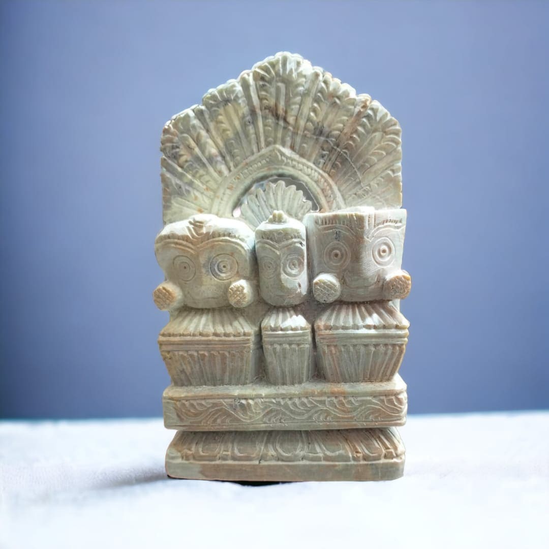 Welcome the Divine Presence of Lord Jagannath with a Marble Murti. This exquisite stone deity captures the divine essence of Shri Jagannath Mahaprabhu, seated upon a magnificent Ratna Singhasan (jeweled throne). Hand-carved from pure marble, this murti brings the blessings of Lord Jagannath into your home or sacred space.