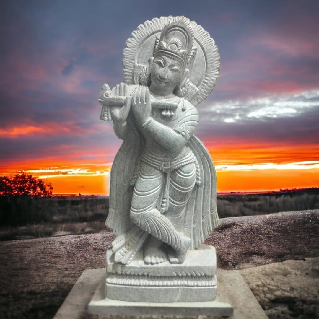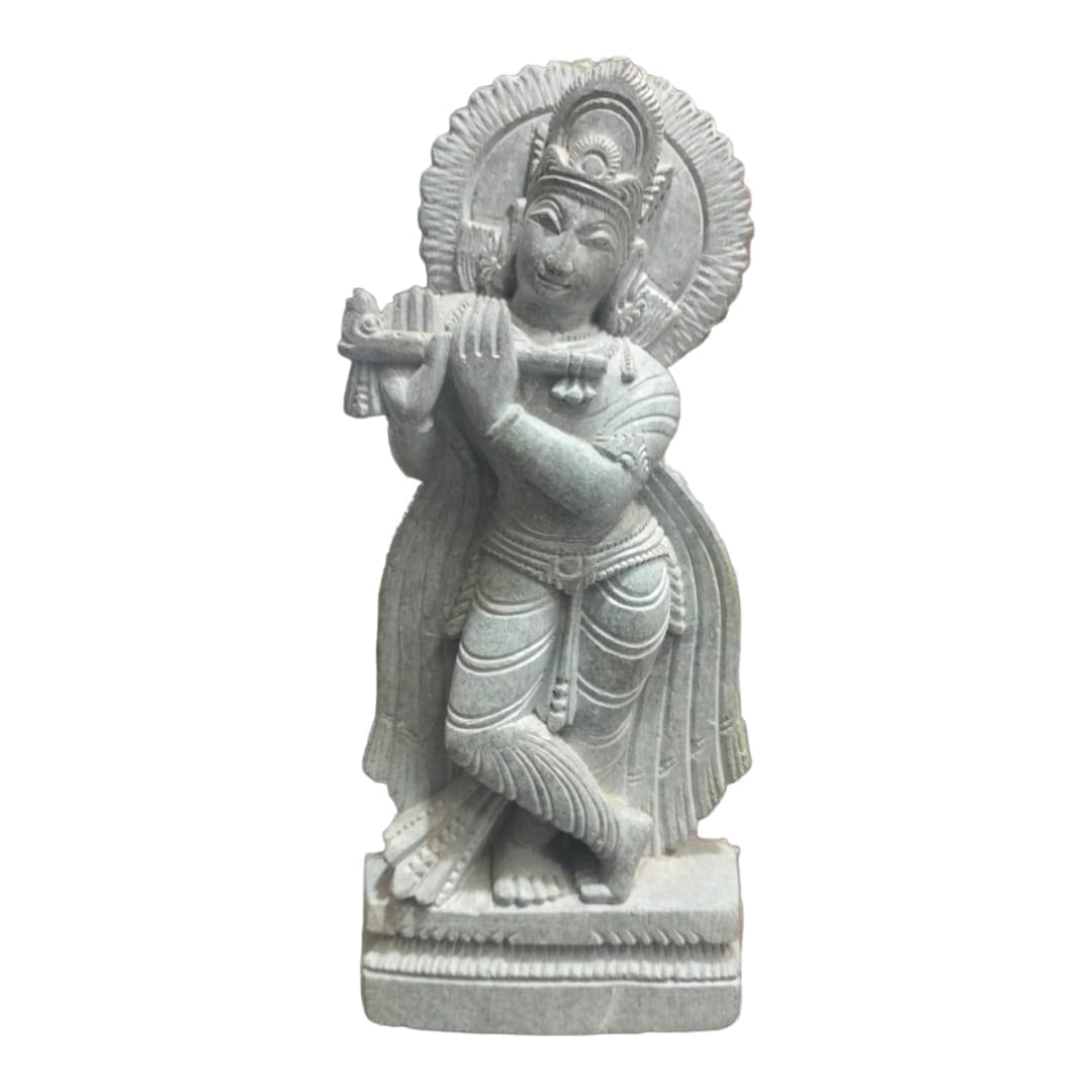 This exquisite stone murti captures the divine essence of Lord Krishna, a beloved deity in Hinduism known for his love, compassion, and playful nature. Hand-carved from stone, this murti brings the blessings of Lord Krishna into your home or office.