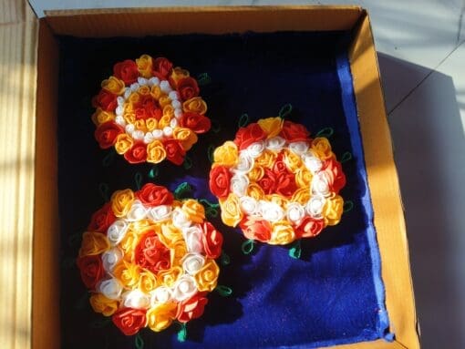 Handcrafted from high-quality organic cotton, these ornaments radiate purity and auspiciousness. Each set is unique, crafted with care for a special touch. πΏβ¨ The complete set includes 4 Hruda Padakas for the deities, ensuring a perfect fit for all sizes. π