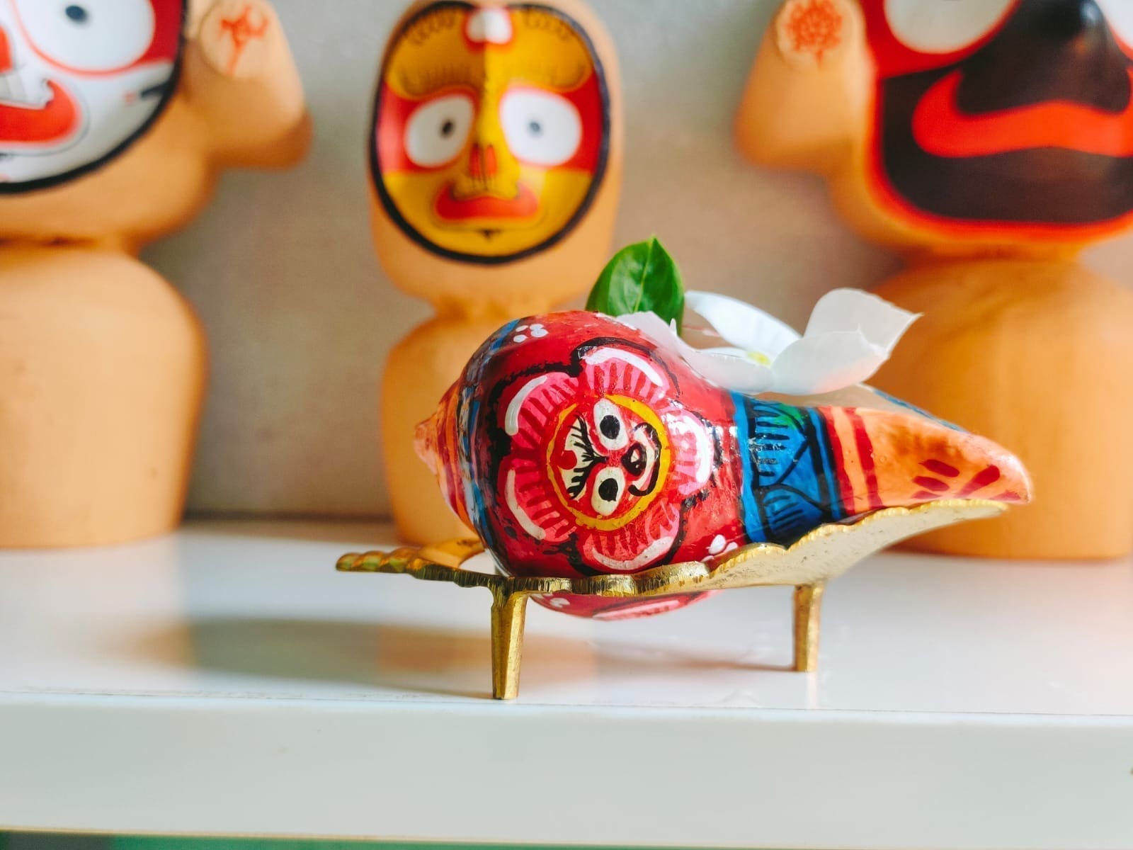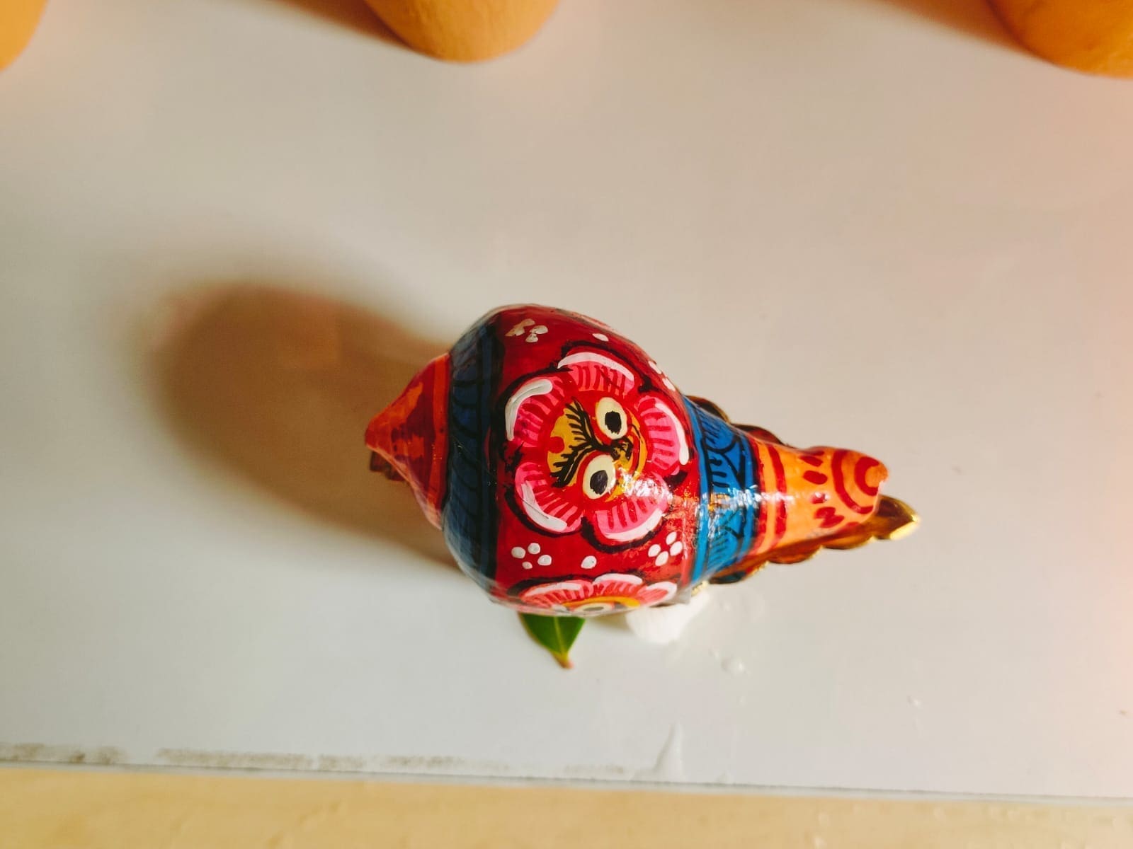 The beautifully painted conch, a sacred instrument for Lord Jagannath devotees, combines divine imagery and sound to elevate your puja experience. Crafted with intricate details and devotion, this conch resonates with spiritual significance, enhancing every water offering with blissful worship. πβ¨