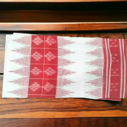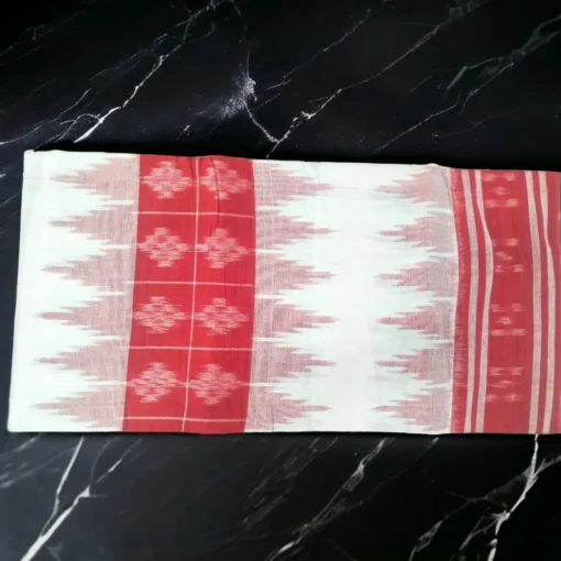 Embrace spiritual comfort with the Justkalinga.com Traditional White & Red Jodo (Dhoti + Uttariya), a symbol of purity and divine connection. Handcrafted in India, this Certified Organic Cotton attire in auspicious white and red colors enhances your spiritual practices with its natural fibers promoting harmony and energy flow.