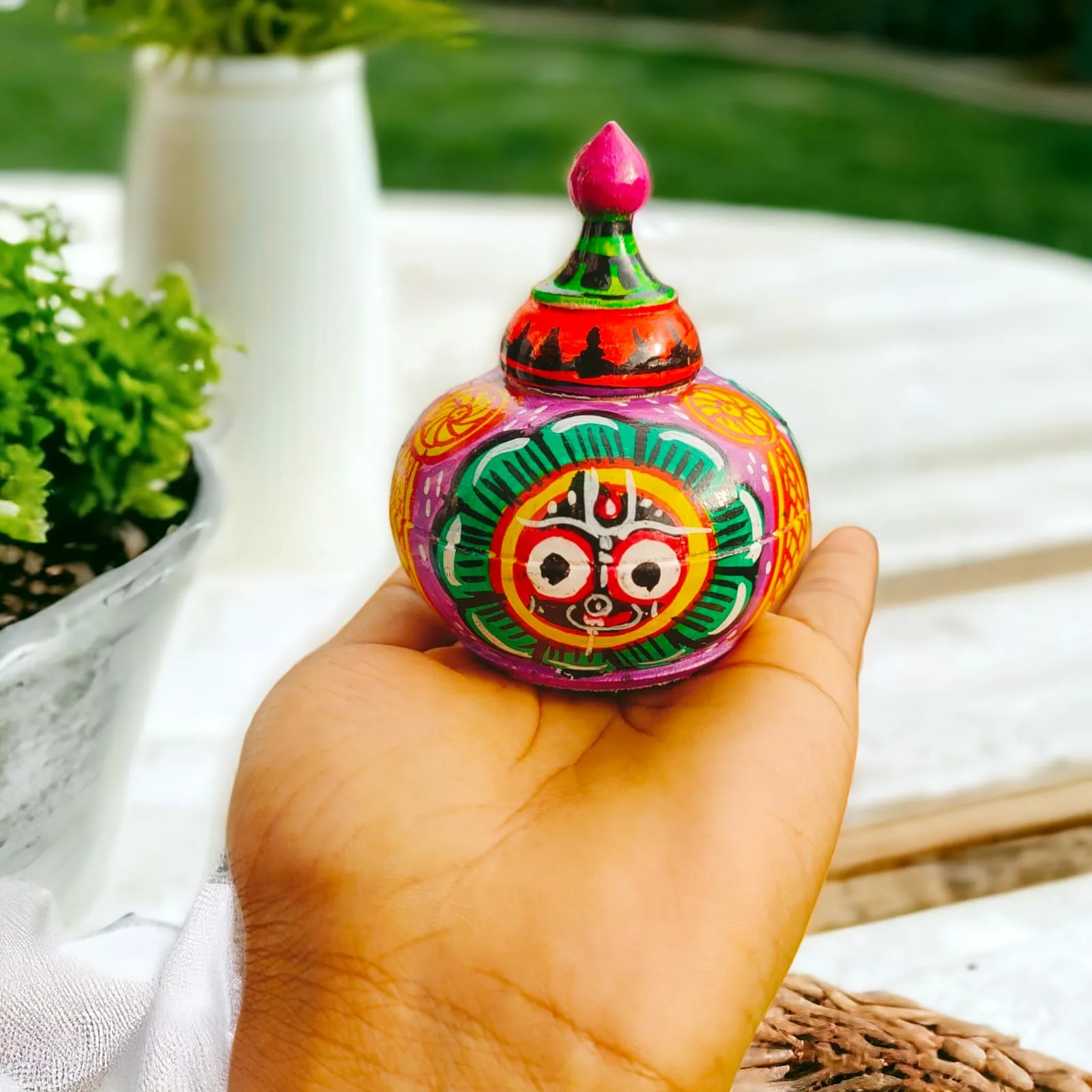 Keywords: Wooden Sindur Stand Shringar Box Kumkum Dabbi Handcrafted Sindoor Odisha Handicrafts Srimandir Ritual Items Divine Return Gifts