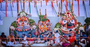 π During the Pahanidi, a Pat Door (cloth curtain) is tied across the thighs of Sri Jagannath and Sri Balabhadra. The devotees pull and pull this Pat Door to carry the Thakura (deities) in the Pahanidi.