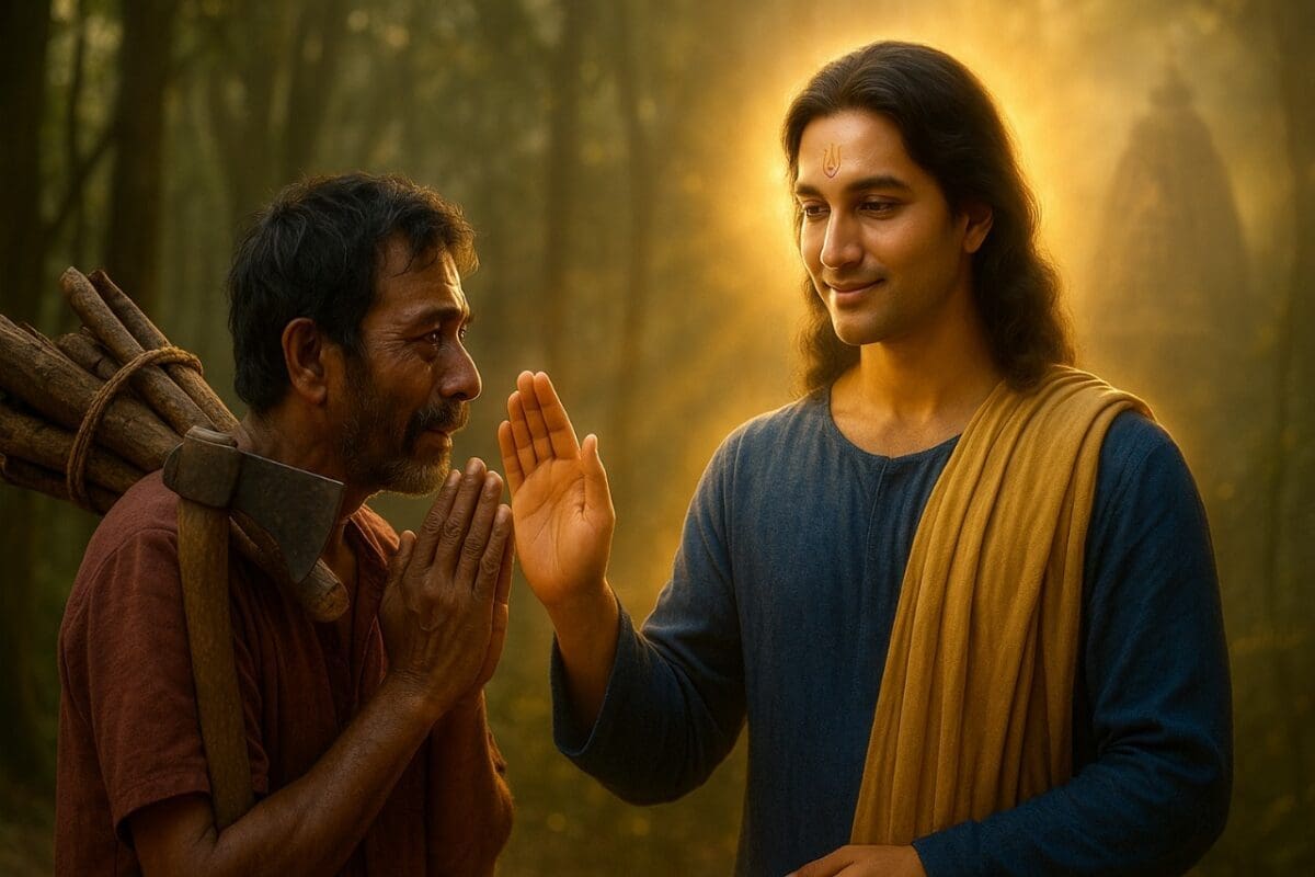 The woodcutter fell at the feet of the Lord, begged for forgiveness, and from that day on, he lived a life of devotion, only remembering the name of God.